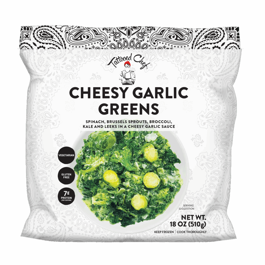 Spinach, Brussel Sprouts, Broccoli, Kale And Leeks In A Cheesy Garlic Sauce.