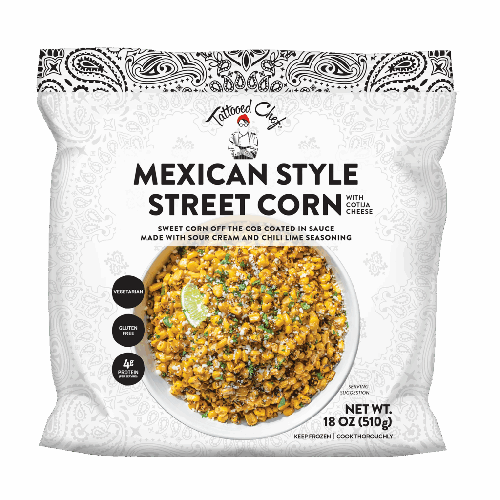 Sweet Corn Off The Cob Coated In Sauce Made With Sour Cream, Chili Powder And Lime.