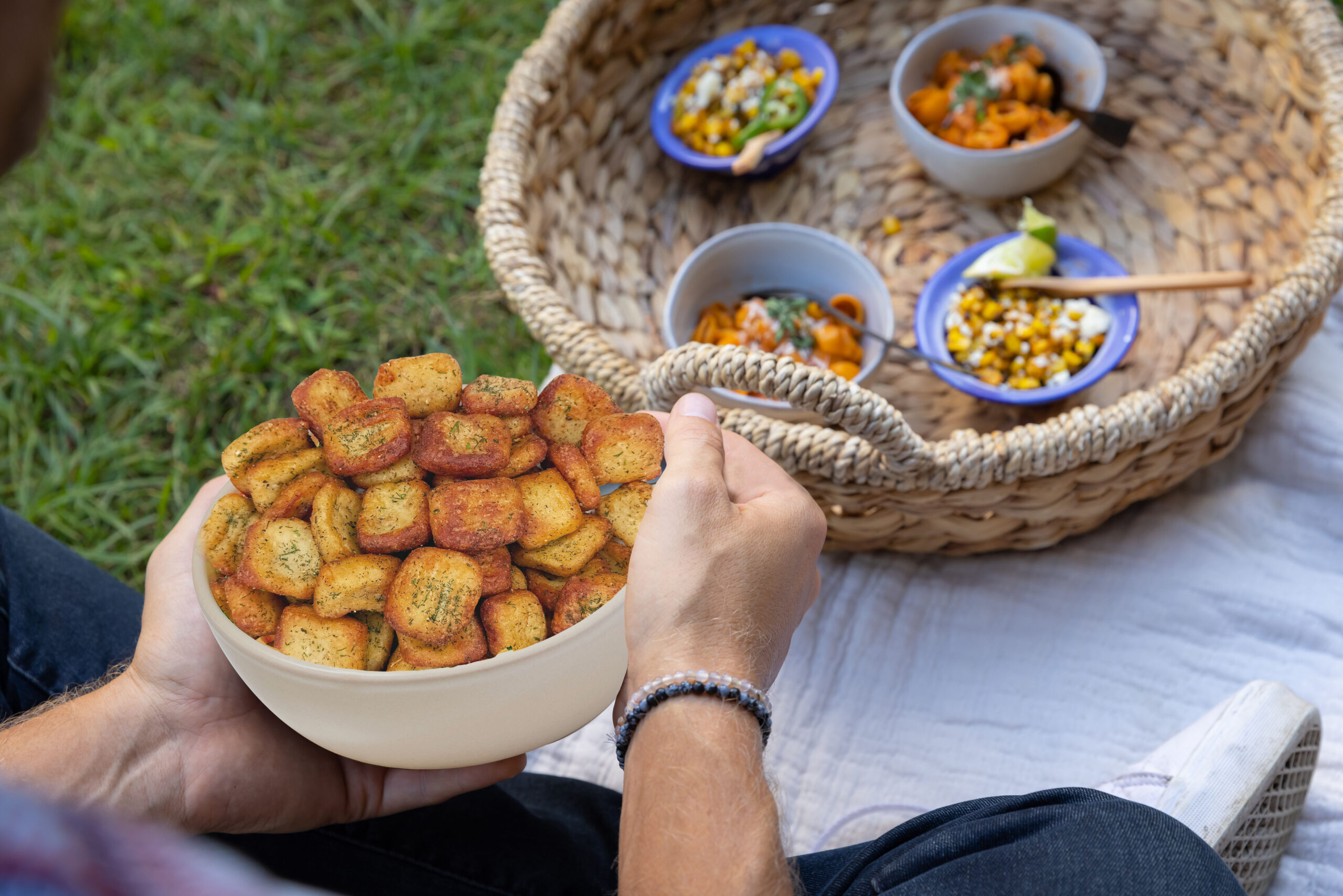 Crispy & Fluffy Potatoes Lightly Coated with Dill Pickle Seasoning.
